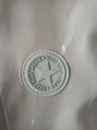 Bolso nuevo con un diseño moderno y un detalle circular con estrella en la parte frontal. - Color gris. - Cierre de cremallera. - Material resistente.