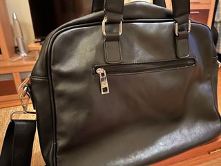 Elegante bolso de Parfois, ideal para llevar documentos u ordenador portátil. - Diseño moderno en color negro. - Asa de mano y correa ajustable. - 4 compartimentos interiores para organización, dos de ellos con cremallera. Dos bolsillos exteriores. Medidas 40x 28x12 aprox. Solo tiene un defecto en una de las asas que se perdió un tornillo (ver foto) y se ha amarrado con un lazo quedando perfecto. El resto, totalmente nuevo.