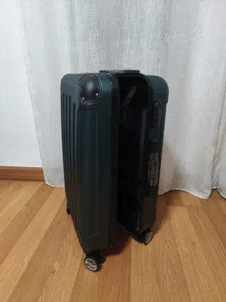 Maleta de viaje de tamaño mediano, ideal para escapadas. - Color verde oscuro. - Diseño rígido con acabado texturizado. - Cuatro ruedas multidireccionales. - Asa extensible y asas de mano. - Candado de combinación integrado.