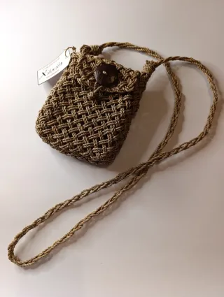 Bolso bandolera tejido a mano con un diseño de crochet y cierre de botón. - Material: Rafia. - Cierre: Botón de madera. - Correa: Trenzada. Este minibolso de crochet es práctico, elegante y cómodo para llevar al hombro o cruzado. Hecho de rafia natural Ispie. Perfecto para el día a día, para ir a la playa, para llevar el movil y otros artículos pequeños, o para cualquier ocasión en la que necesites un bolso pequeño.