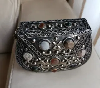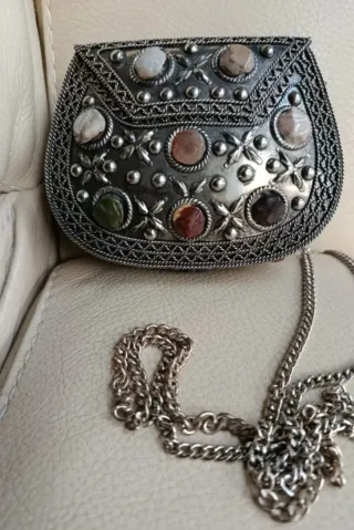 Bolso de mano plateado con piedras