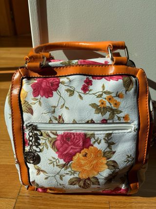 Bolso de mano floral con detalles naranjas