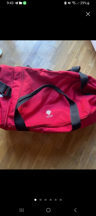 Bolsa deportiva conmemorativa del centenario del CA Osasuna. - Diseño en color rojo. - Logo de Adidas y del club. - Asas de mano y correa ajustable.
