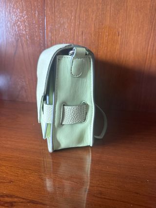 Bolso de mano o bandolera de tamaño mini. - Material con textura. - Cierre de hebilla. - Correa ajustable.