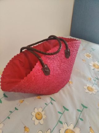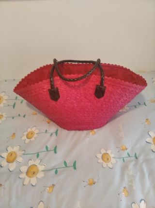 vendo bolso en muy buen estado color rosa fuerte de fibra vegetal