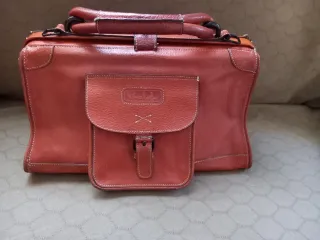 Bolso de cuero vintage marrón y naranja