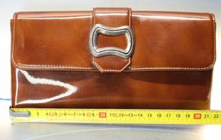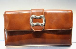 Bolso de mano vintage. Charol marrón con hebilla plateada.