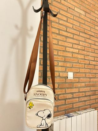 Bolso pequeño con diseño de Snoopy de Peanuts. - Color beige con detalles en marrón. - Estampado de Snoopy y Woodstock. - Cierre de cremallera.