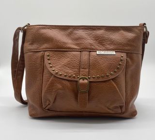 Bolso de piel con un diseño elegante y práctico. - Material: Piel. - Color: Marrón. - Cierre de solapa. - Detalle metálico en la solapa.