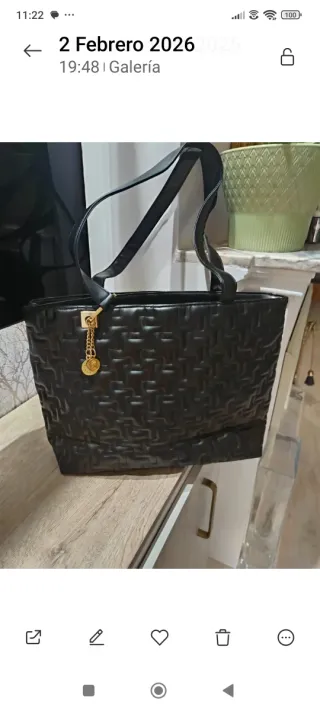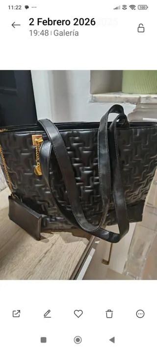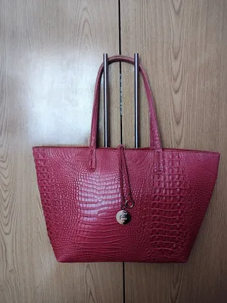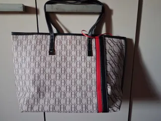 Bolso de mano elegante y espacioso. - Diseño moderno con detalles dorados. - Asa cómoda para llevar al hombro o en la mano. - Incluye un charm colgante con el logo de la marca.