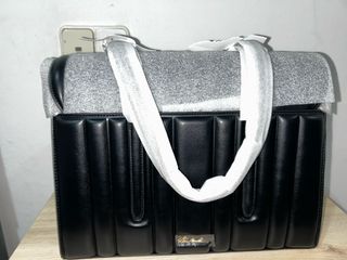 Elegante bolso de la marca Steve Madden en color negro. Presenta un diseño acolchado con líneas verticales que le dan un toque moderno y sofisticado. - Material: Piel sintética. - Cierre: Cremallera. - Interior: Compartimentos organizadores.