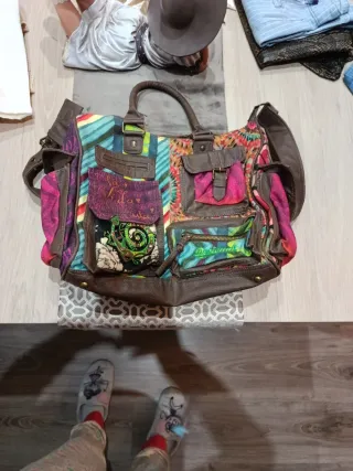Bolso de la marca Desigual con un diseño llamativo y vibrante. - Amplio espacio interior. - Múltiples bolsillos exteriores para organización. - Asas cómodas para llevar al hombro o en la mano. - Detalles en piel sintética.