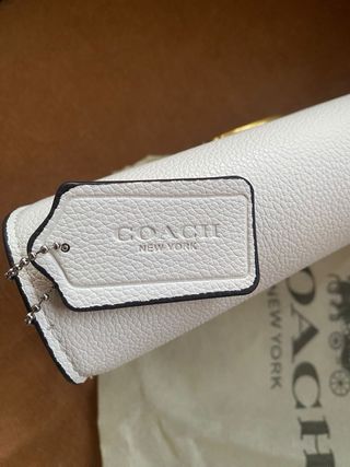 Elegante bolso de la marca Coach. - Color blanco texturizado. - Detalle frontal con el logo de la C en dorado. - Incluye correa ajustable para llevar al hombro o cruzado. Envios en menos de 24 horas 🚚