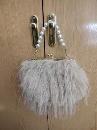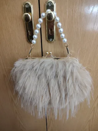 Bolso de fiesta peludo con perlas