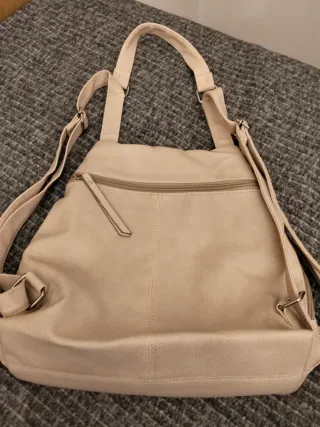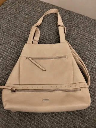 Bolso convertible en mochila de la marca Misako. - Color beige. - Diseño moderno con varios compartimentos. - Cierre de cremallera. - Detalle de tachuelas decorativas.