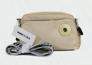Bolso bandolera de la marca BIMBA Y LOLA en color beige. - Correa ancha con logo. - Cierre de cremallera. - Compartimento exterior con botón. - Detalle de logo circular en la parte frontal.