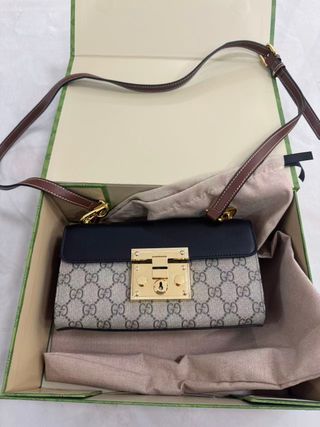 Bolso Gucci Beige y Negro Cadena Dorada