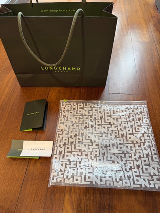 Bolsa packaging de la marca Longchamp, incluida la bolsa de plastico, certificado y cartón. Solo envios