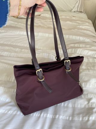 Bolso de la marca Inside, en color morado y con etiqueta. - Diseño acolchado. - Asas negras. - Material textil.