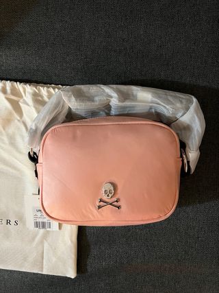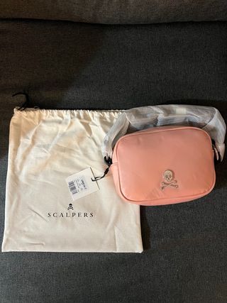 Bolso bandolera de la marca Scalpers en color rosa. Incluye su bolsa guardapolvo. - Diseño con detalle de calavera y tibias cruzadas. - Cierre de cremallera. - Incluye bolsa guardapolvo de tela.