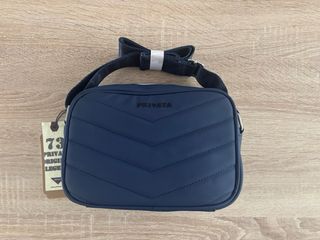 Bolso bandolera de la marca Privata en color azul. - Compartimento principal con cremallera. - Bolsillo frontal con cremallera. - Detalle de logo triangular en la parte frontal. - Nuevo a estrenar con etiqueta. - Bolsa de tela incluida. Más bolsos y accesorios en mi perfil