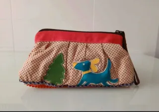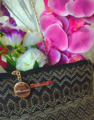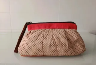 Bolso de mano, que también podría servir como neceser, muy práctico y ligero. Está hecho a mano, de forma artesanal. No hay dos iguales. Medidas: 24 x 13 cm. Está en perfecto estado, sin apenas uso.