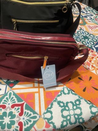 Bolso de mano de color rojo, sin estrenar. Tiene un diseño moderno y elegante. - Material textil. - Cremalleras doradas. - Correa ajustable. Nuevo con etiqueta,tengo varios en mi perfil,regalos de cumpleaños y Navidad que no voy a usar