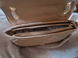 Bolso de mano Valentino en color crema, con diseño acolchado. - Cierre de solapa. - Cadena dorada para llevar al hombro. - Logo de la marca en dorado. Precio en tienda 110,precio actual 55 euros. Original