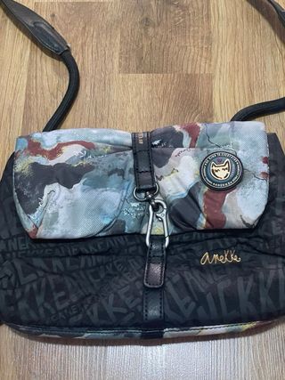 Bolso de la marca Anekke con un diseño llamativo. - Combinación de colores negro y multicolor. - Correa ajustable para llevar al hombro o cruzado. Se hacen envíos, sólo por medio de wallapop