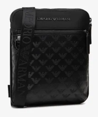 Bolso de hombre de la marca Emporio Armani. - Diseño elegante en color negro. - Correa ajustable para mayor comodidad. - Detalle de logo grabado en relieve.