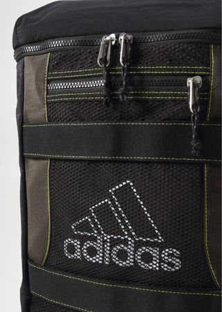 Mochila de la marca Adidas Originals en color negro y verde oliva. Diseño unisex. - Logo de Adidas en blanco. - Compartimento principal con cremallera. - Bolsillo lateral de malla.