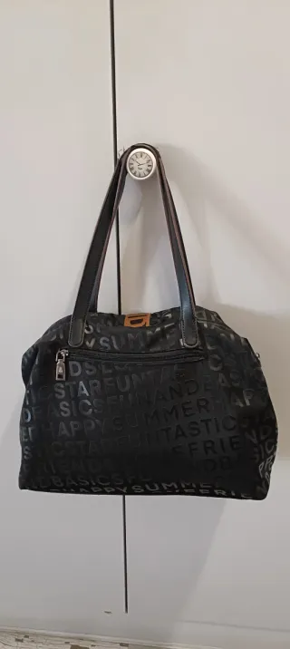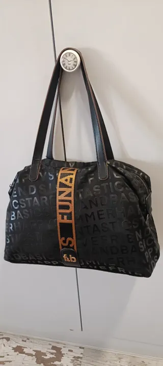 Bolso de la marca Fun & Basics con un diseño moderno y llamativo. Perfecto para el día a día. - Exterior con estampado de letras en relieve. -Perfecto estado.Desgaste normal en asas del uso. Ultimas fotos. - Pequeño logo f&b en la parte frontal.