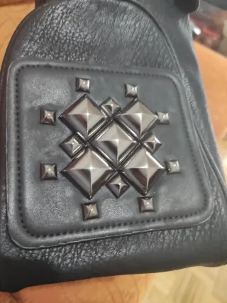 Bolso negro con tachuelas plateadas.