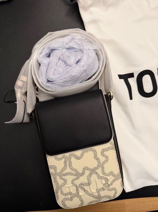 Bolso pequeño tipo bandolera de la marca Tous con un diseño moderno y elegante, tamaño para meter el móvil y poco más. - Combinación de colores beige y negro. - Estampado distintivo de la marca. - Con monedero incluido.