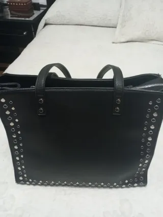 Bolso con un diseño moderno. - Acabado en piel sintética. - Detalle de tachuelas metálicas. - Compartimento principal espacioso, con bolsillos interiores.