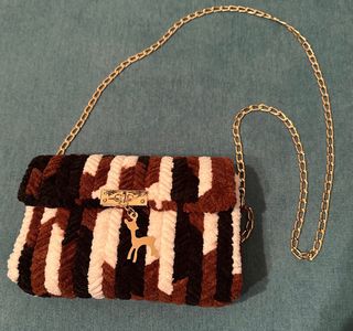 Bolso hecho a mano, lo cual lo hace exclusivo con un diseño único y llamativo, forrado por dentro,perfecto para complementar tu estilo. -Cierre de imán para mayor seguridad. - Asa de cadena dorada. - Adorno colgante de ciervo. -medidas en fotos - la cadena mide 118