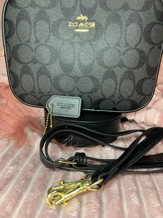 Bolso de la marca Coach con un diseño elegante. - Acabado en negro con detalles dorados. - Incluye etiqueta de la marca.