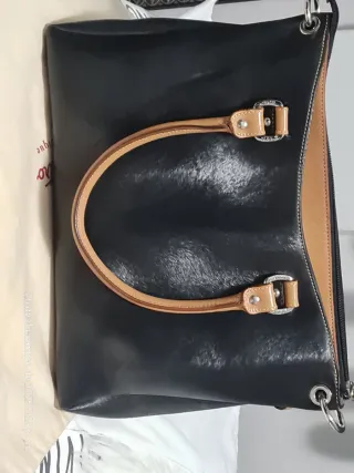 Elegante bolso de piel de la marca El Potro, negro y marrón. - Fácil de combinar. - Medidas 35*27*14 - Poco usado y bien cuidado. - Asa para llevar al hombro o en la mano. - Interior y exterior impecables. Solo pequeño roce en 3 esquinas, (en la mano apenas se aprecia). Pero lo muestro.