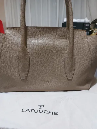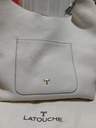 Elegante bolso de mano de la marca LATOUCHE, en un bonito color beige y con una textura de piel muy agradable. - Piel de alta calidad. - Diseño atemporal. - Logo de la marca grabado en la parte frontal.