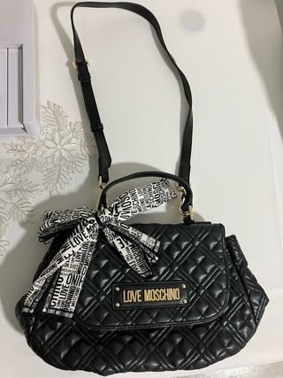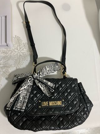 Bolso de mano y bandolera Love Moschino. - Diseño acolchado. - Detalle de lazo con logo. - Placa dorada con el nombre de la marca.