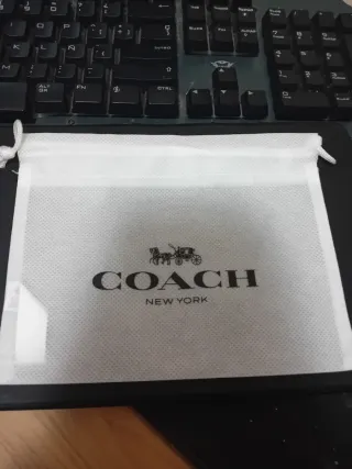 Bolsita de tela Coach original. - Cierre de cordón. - Diseño con el carruaje y el nombre de la marca. - Fabricada en material textil. Percecta para guardar pulseras, pendientes, incluso gafas.