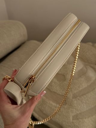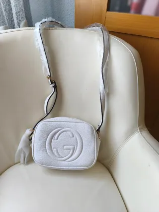 Bolso bandolera de señora de la marca G sin estrenar con un blanco precioso se vende rebajado en 18 euros valía 25 es muy manejable ni grande ni pequeño - Diseño con logo GG en relieve. - Incluye borla decorativa. - Correa ajustable.