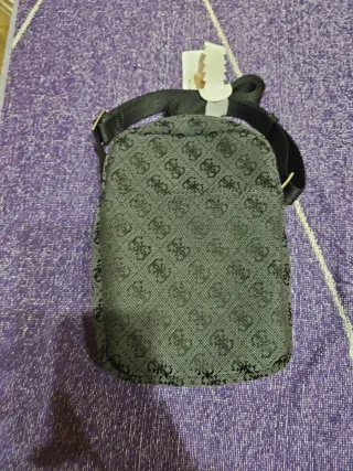 Bolso pequeño de la marca Guess en color gris con un diseño estampado. - Correa ajustable. - Cierre de cremallera. - Detalle de franjas verticales en la parte frontal. - Logo de Guess en la parte frontal.