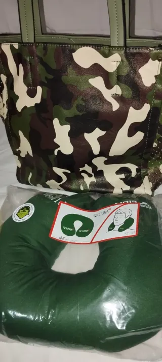 Bolso de mujer con estampado militar. - REGALO cojín cervical de VIAJE. - Diseño llamativo y moderno. - Ideal para complementar cualquier atuendo.