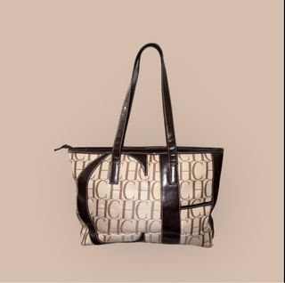 Elegante bolso con el distintivo monograma de la marca. - Diseño con monograma CH. - Combinación de colores marrón y beige. - Asas de cuero marrón.
