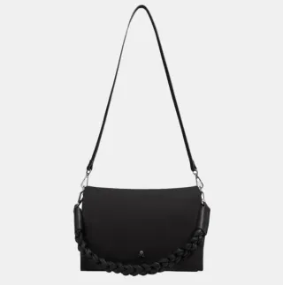 Bolso de la marca Scalpers en color negro. - Asa larga ajustable. - Asa corta trenzada - Cierre con solapa y 2 compartimentos dentro - Pequeña calavera frontal decorativa - Medidas: 11 ancho, 20 alto, 30 largo