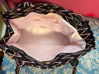 Bolso con un llamativo diseño de zigzag en negro y rosa. - Asa ajustable. - Detalle de etiqueta con el logo de la marca.