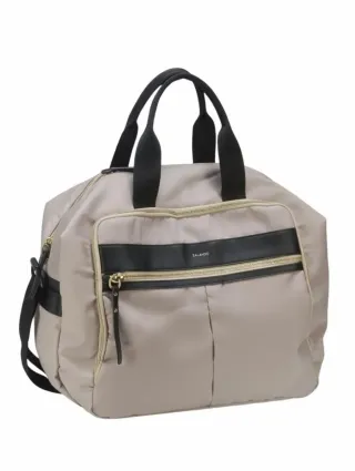 Bolso de la marca Jilai Italy con un diseño práctico y moderno. - Color beige con detalles en marrón. - Compartimentos frontales con cremallera. - Correa ajustable para llevar al hombro o cruzado.