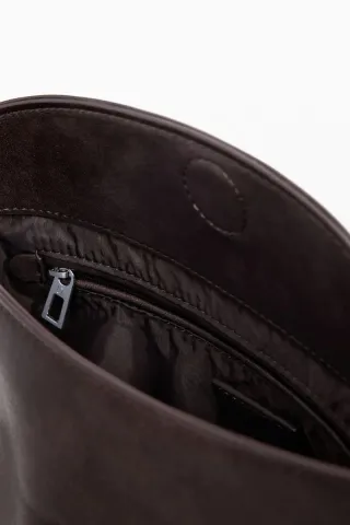 Bolso bandolera de hombre con un diseño clásico y elegante. - Material de cuero genuino. - Color marrón oscuro. - Compartimento principal con cierre de solapa. - Logo de la marca grabado en la solapa.