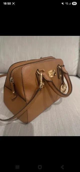 Bolso de mano Michael Kors en color marrón con detalles dorados. Un accesorio elegante y versátil. - Asa corta superior. - Correa de hombro desmontable. - Placa metálica con el logo de la marca.